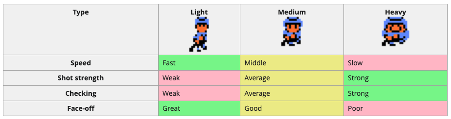 This might be your favorite childhood game, or you may have never picked up a controller. Either way, picture a simple sports game in typical pixelated 80s design. Before each match in Nintendo Ice Hockey, you assemble a lineup from three archetypes: Light, Medium, and Heavy players. That's it. That's the whole roster strategy.